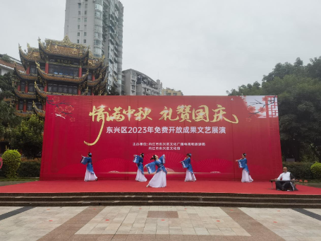 9月27日上午,由内江市东兴区文化广播电视和旅游局、内江市东兴区文化馆主办的“情满中秋·礼赞国庆”东兴区2023年免费开放成果文艺展演在大千广场隆重举行。
